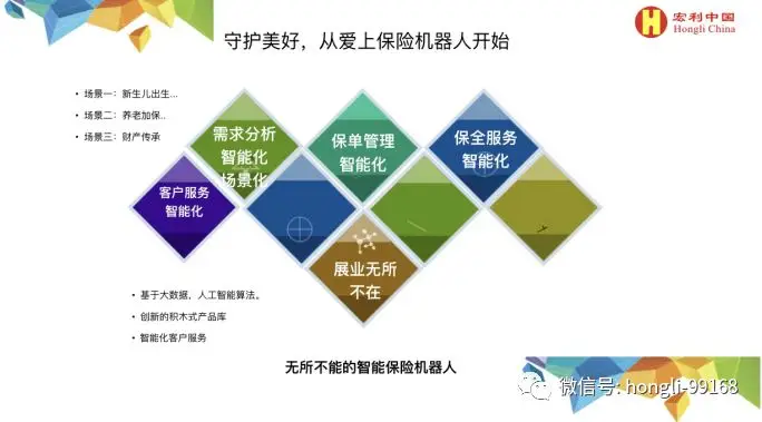 会上宏利公司总经理朱耿新、机器人研发负责人吴少春对“保险机器人”的功能进行了详细讲解。指出所谓的“保险机器人”是北京宏利保险代理有限公司正式推出的一个更为智能化、人性化、数字化的互联网综合保险服务平台,是人工智能和保险营销相结合的新型的应用系统。这不仅可以为保险客户和保险营销员提供全方位的综合整体解决方案,更能够通过场景化、智能化的深度挖掘保险需求,以业界独创的搭积木方式将保险方案模块化组建起来,为客户提供最理性的保险咨询和购买体验,为用户带来直达、精准、简单、个性化体验服务。